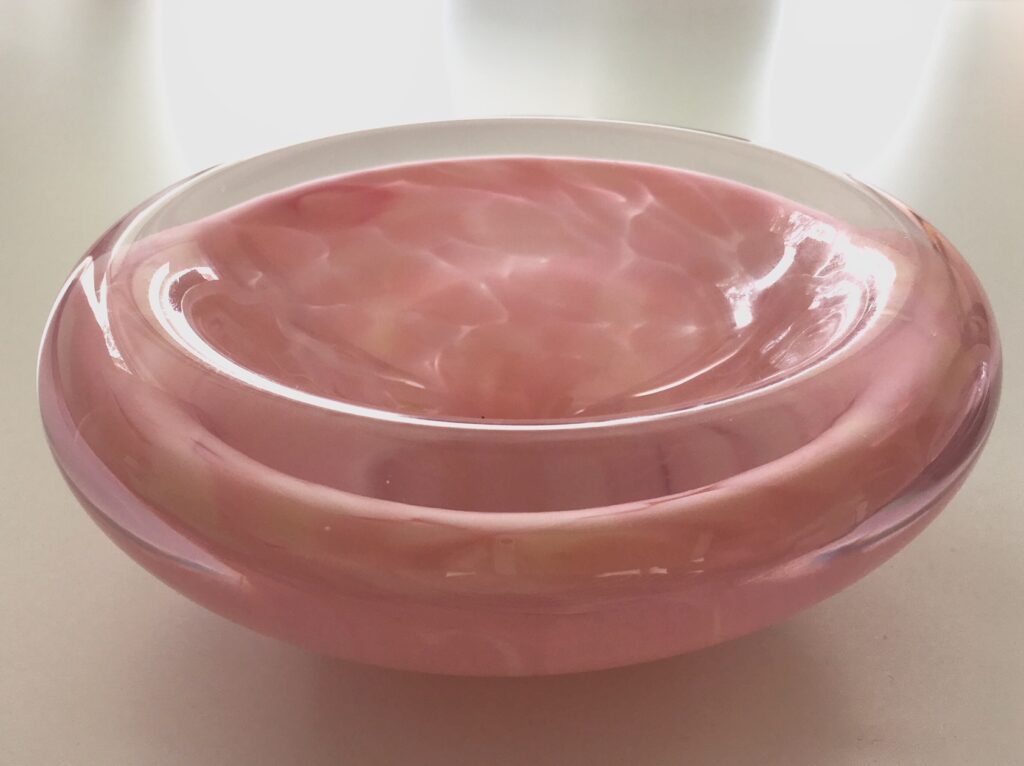 Op de openbare basisschool werd er ook veel tijd besteed aan keuze cursussen, dus batikken en tie-dye maar ook kaarsen gieten en dippen. Ontzettend leuk! Na de Havo wilde ik stewardess worden, maar was te jong dus heb ik de MBO opleiding Mode en Kleding gevolgd. Ik ben dus gediplomeerd coupeuse, maar doe er nog maar heel weinig mee. Wel ben ik altijd creatief gebleven. Ik heb 2 keer een cursus edelsmeden gevolgd, tiffany (glas-in-lood maar dan vaak gebruiksvoorwerpen), glasblazen en glaskralen maken. Dit zijn wel hobby’s waar je machines of een werkplaats voor nodig hebt dus daar ben ik mee gestopt. Ik zou nog wel eens willen leren pottenbakken of werken met porselein.